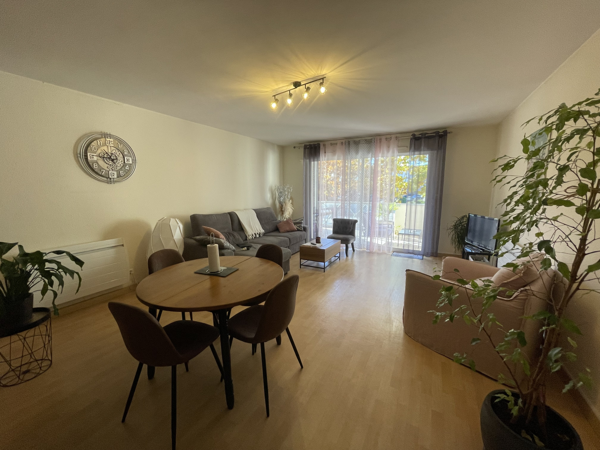 La Primaube, idéalement situé sur la place de l’étoile, grand type 2 de 56.69m2 au 1er étage d’une petite copropriété comprenant une entrée avec placard et cellier /buanderie, un séjour avec cuisine américaine équipée (hotte, plaque, four) donnant sur belle terrasse couverte plein Sud, une chambre donnant sur un balcon, une salle d’eau et un wc séparé. Il dispose également d’un parking couvert et d’une cave. Disponible début janvier.
