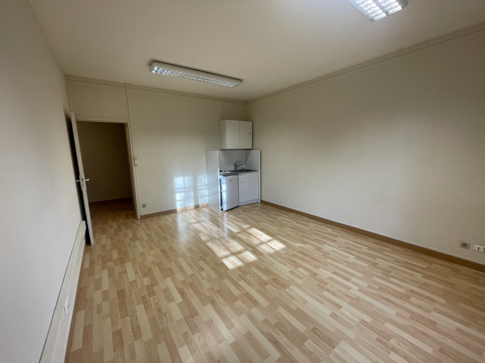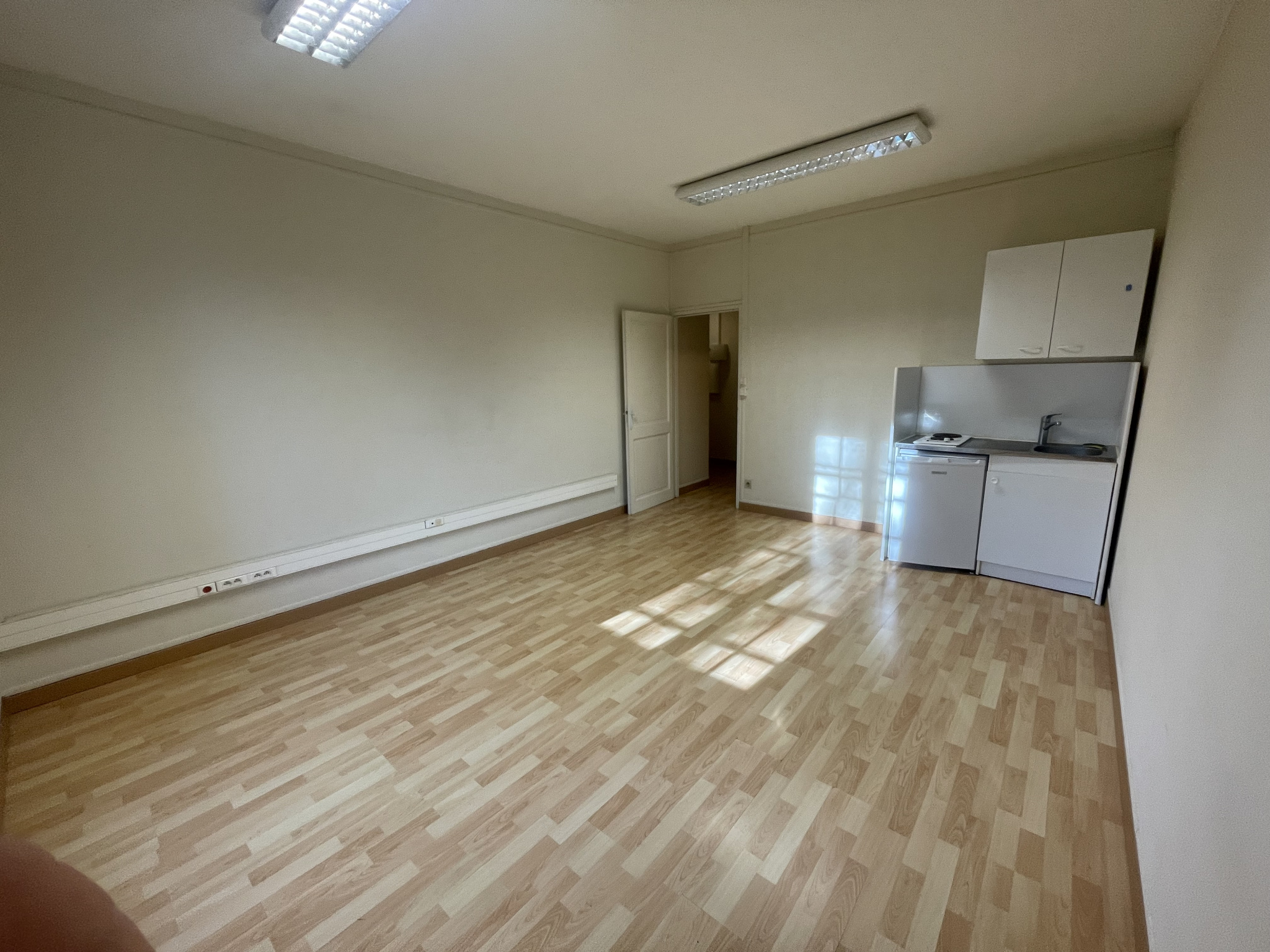 – une entrée avec un placard, une pièce principale avec une kitchenette équipée, une salle de bains, un wc.