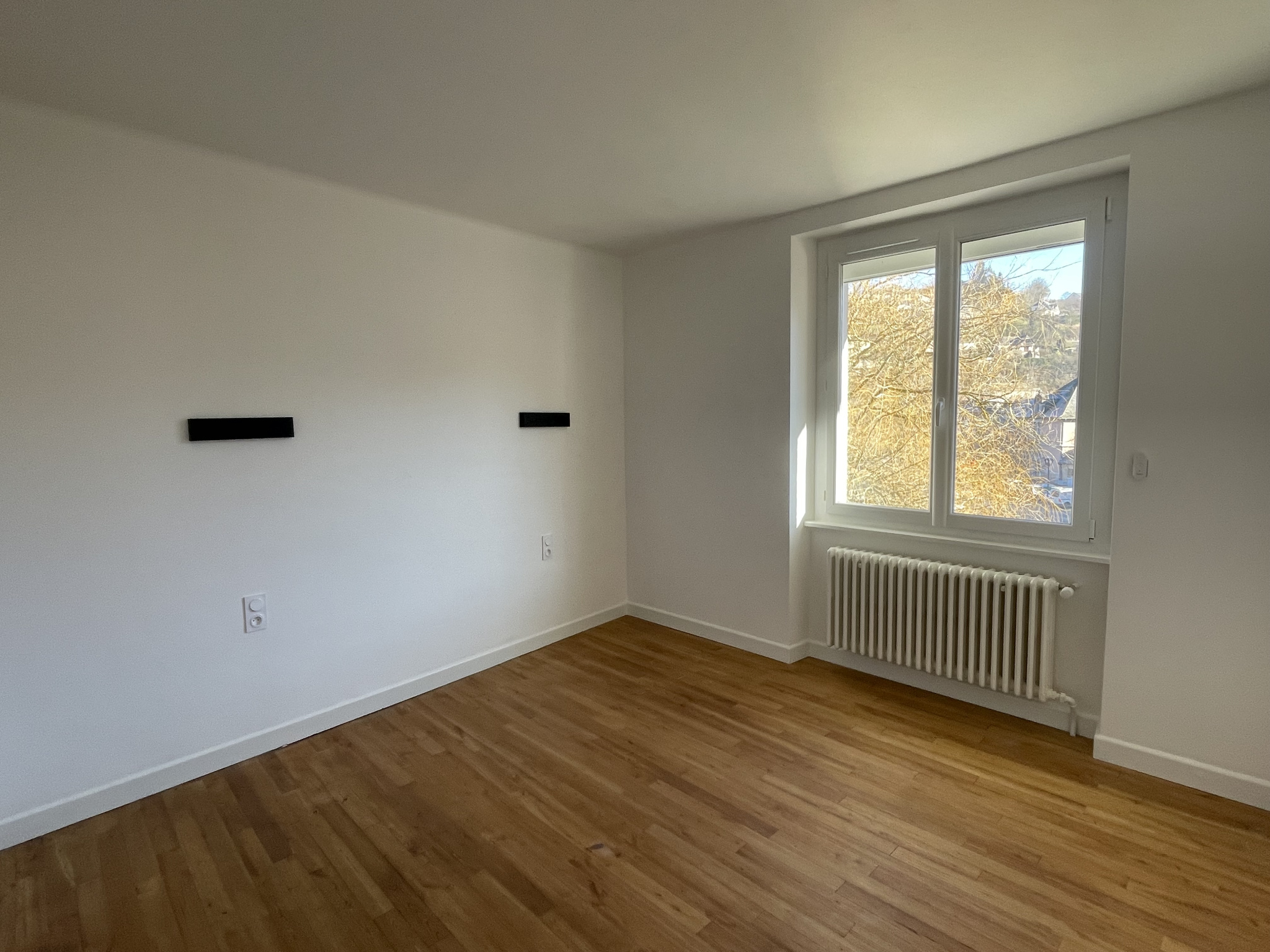 – une entrée desservant une cuisine équipée donnant sur balcon avec vue sur l’Aveyron, un double séjour, 3 chambres, une salle d’eau et un wc.
