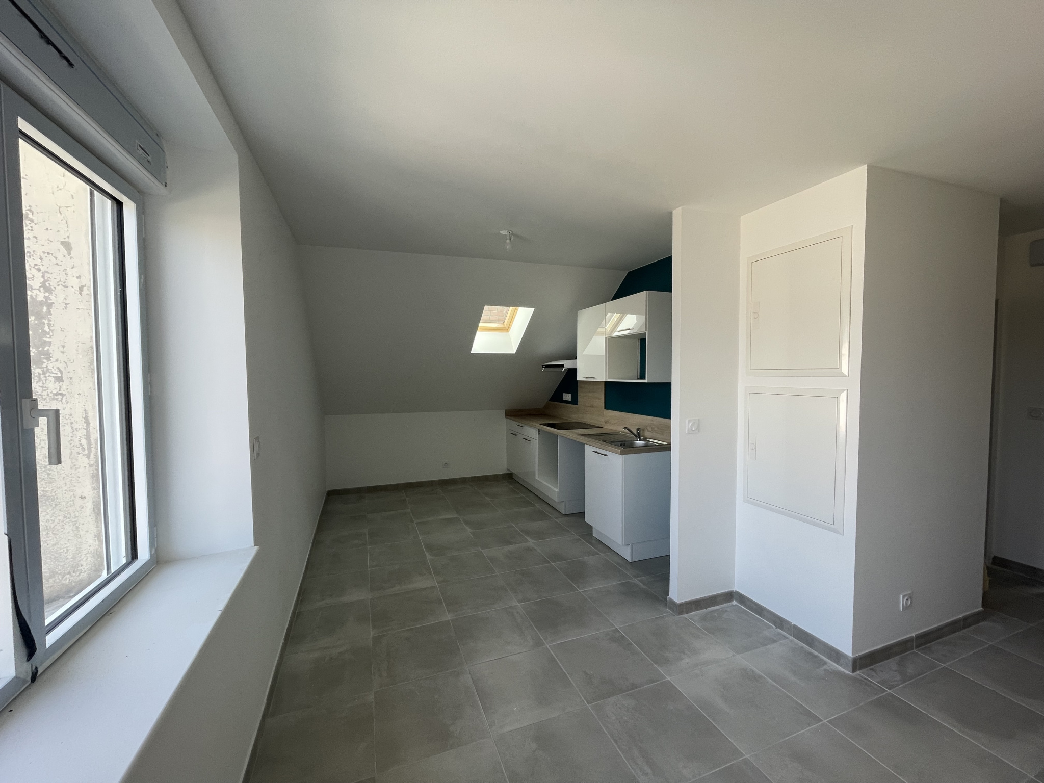RODEZ/PROCHE CENTRE : T1Bis en premier et dernier étage de 33m2 loi boutin, (46m2 au sol) comprenant une pièce à vivre avec cuisine aménagée, une chambre, une salle d’eau avec un wc.
