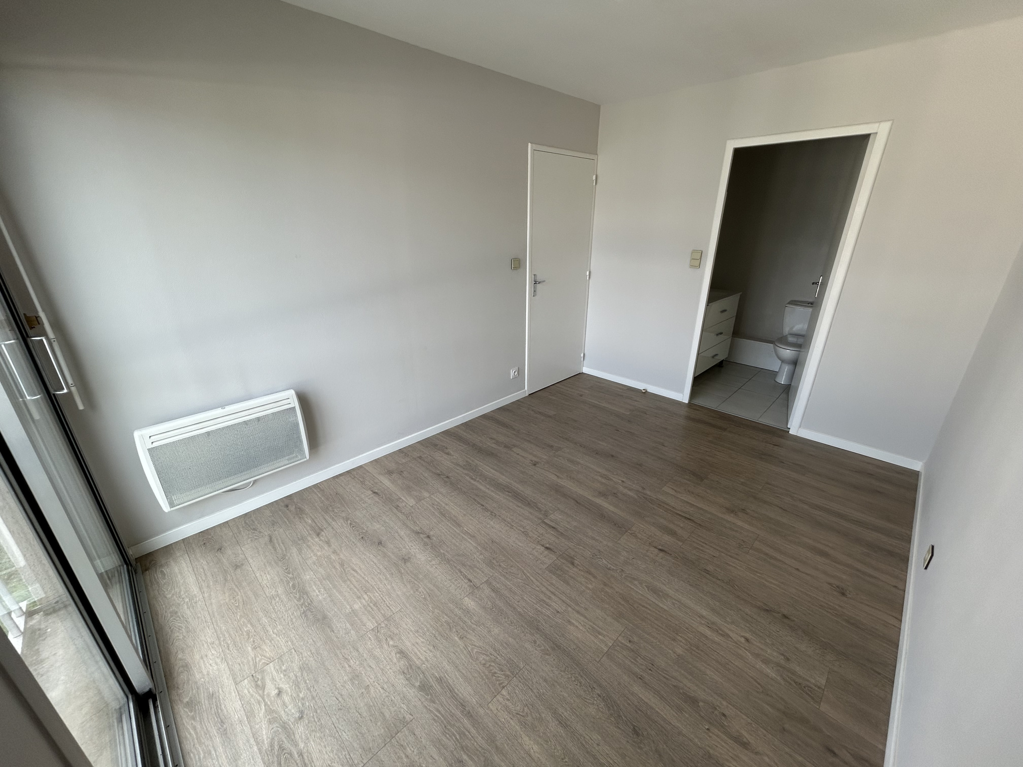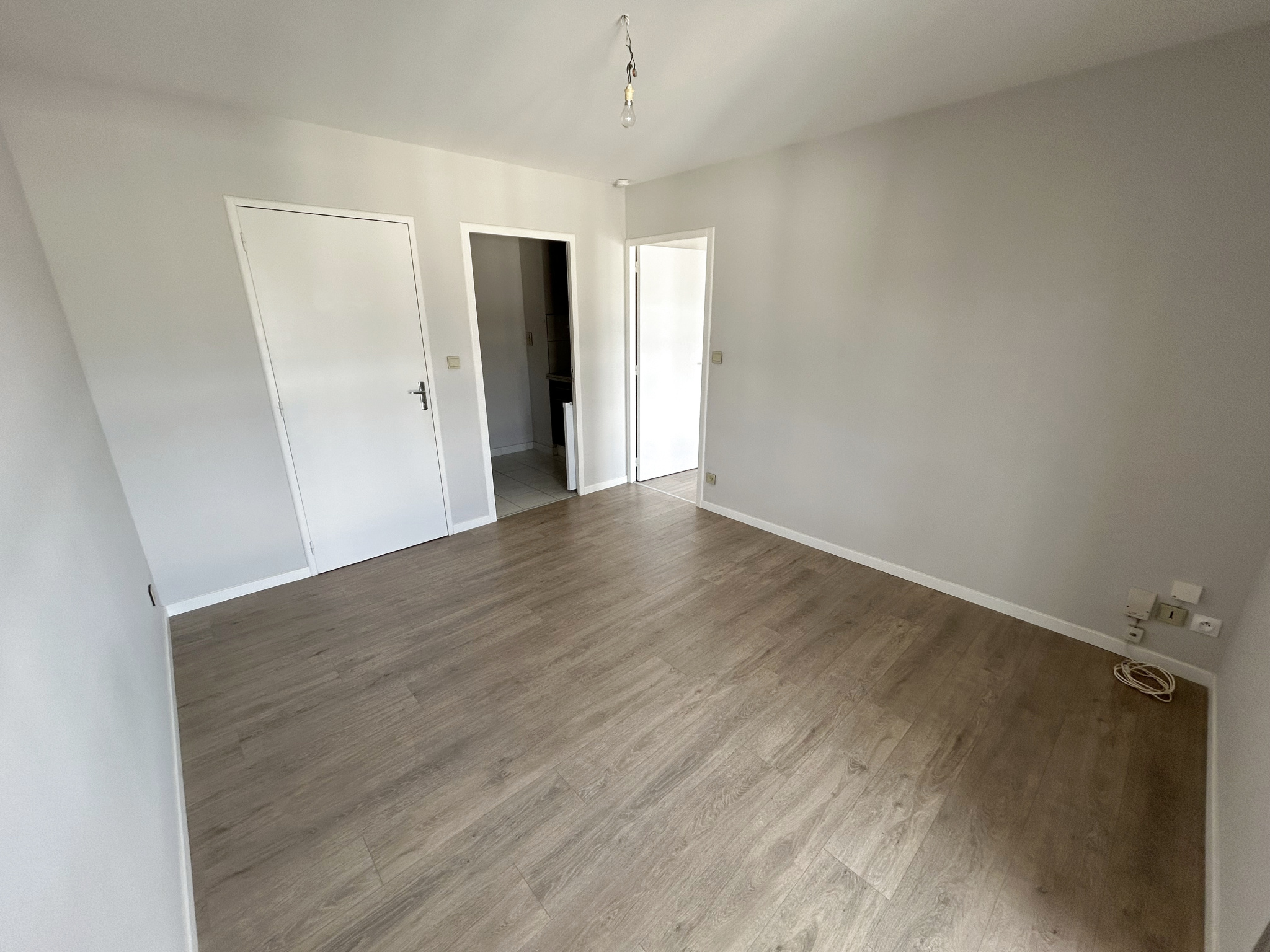 – une entrée avec placard, un séjour, une kitchenette équipée (plaque + hotte), une chambre, une salle de bains, un wc.