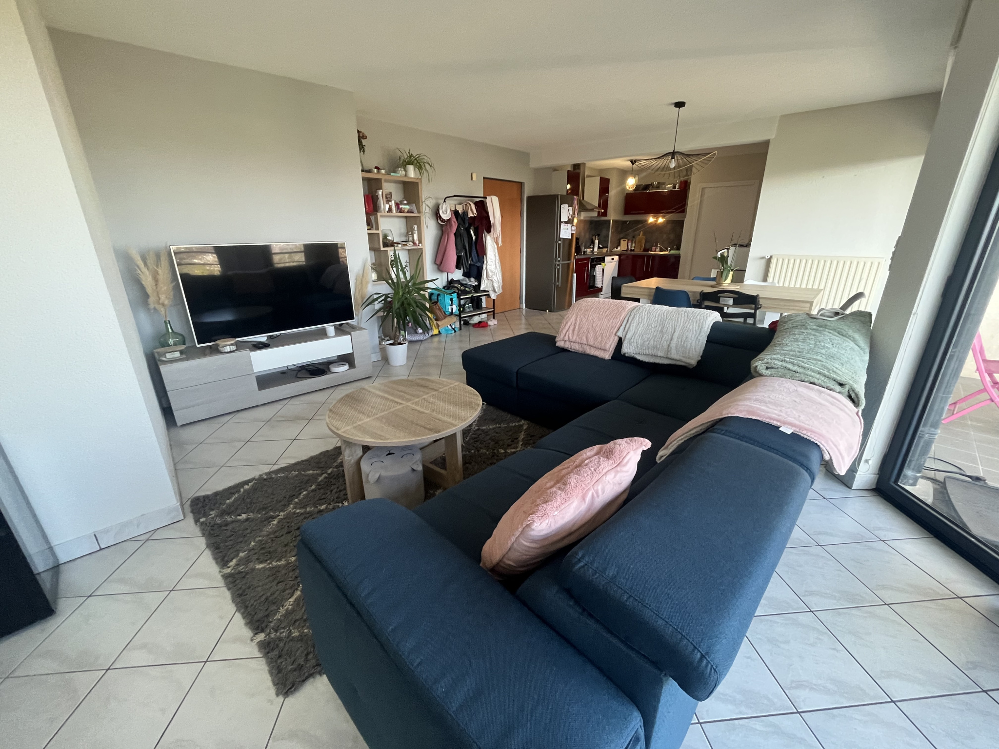 – Un séjour disposant d’une terrasse avec une belle vue dégagée, une cuisine américaine équipée d’un four, d’une plaque vitrocéramique et d’une hotte, deux chambres dont une avec placard, une salle de bains et un WC.